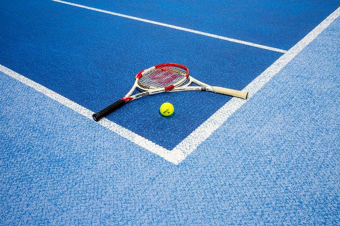 Sechs Tennisplätze, davon Platz 1 - 5 mit strukturiertem Tennisvelours-Teppich FIRST LINE 1400, mit höchstem Spiel- und Laufkomfort; mit Granulat.
